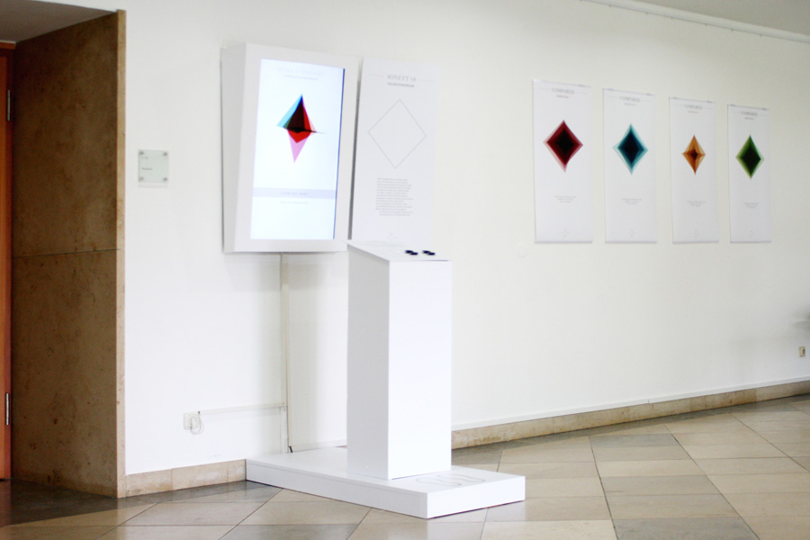 Zu sehen war dieses Projekt vom 15.05.2014 bis zum 04.07.2014 im Rahmen der Ausstellung »Shakespeare by numbers. Ein intermedialer Rundgang durch die Sonette« in der Akademie der Wissenschaften und der Literatur in Mainz. Ein weiteres Mal durfte das LyrikLabor ein Event der Hochschule für Musik Mainz mit dieser Ausstellung begleiten.
